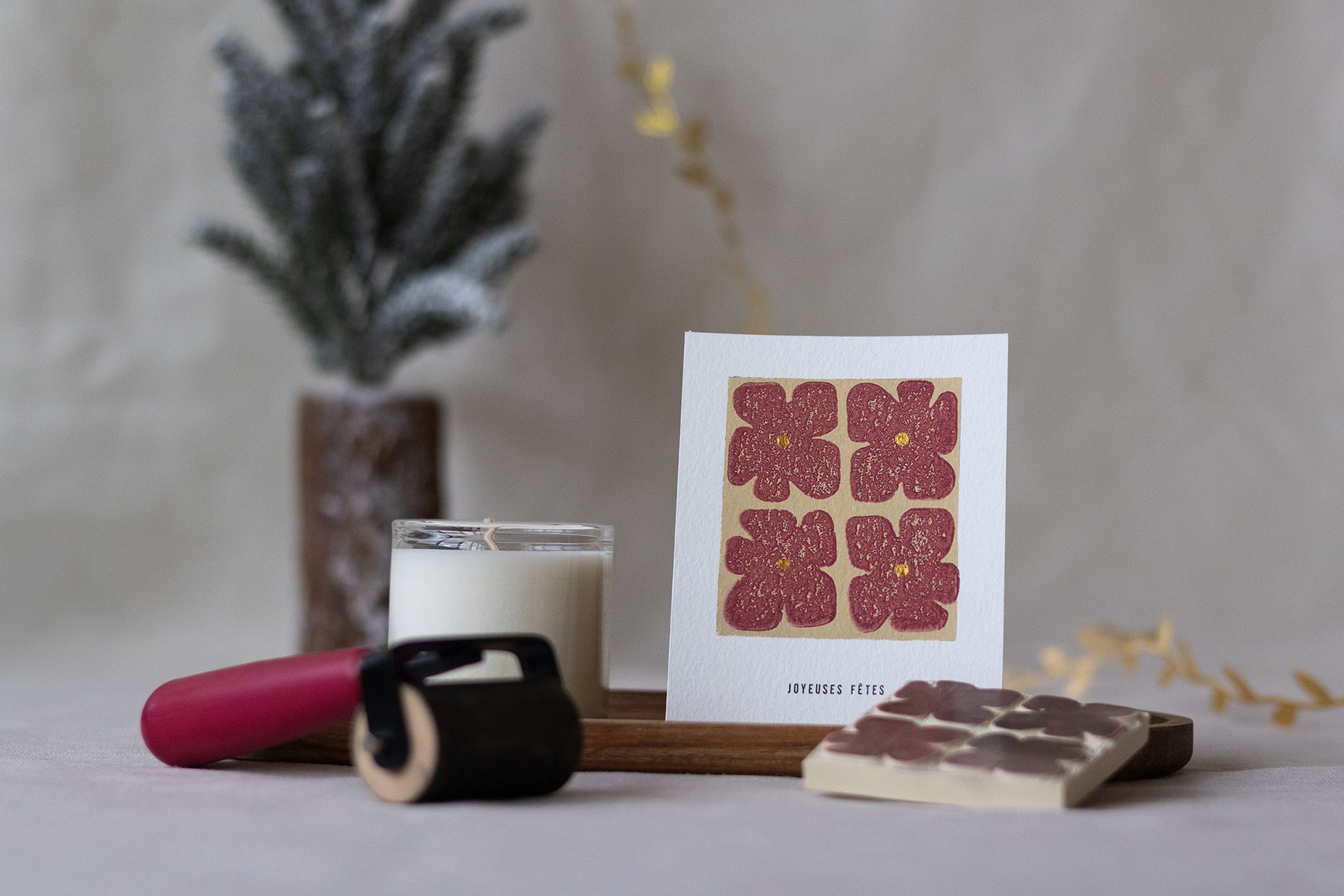 Le doux bruit de la neige, le parfum du sapin. La chaleur du chalet et l’attente du matin. Ces cartes gravées et peintes à la main se glissent sur un paquet ou dans l’assiette au souper. Elles accueillent aussi les jolis mots. Le plus beau des cadeaux. Collection “Joyeuses Fêtes 2025”. Disponible par paquet de 6 cartes bien ficelées. 4 couleurs, du rose au doré.